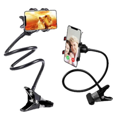 Metal 360 Degree Flexible Portable Foldable -Lazy Stand Bracket Cell Phone Holder/Gooseneck Long Arm Clip Mobile Stand for Table Mobile Stand for Bed Office